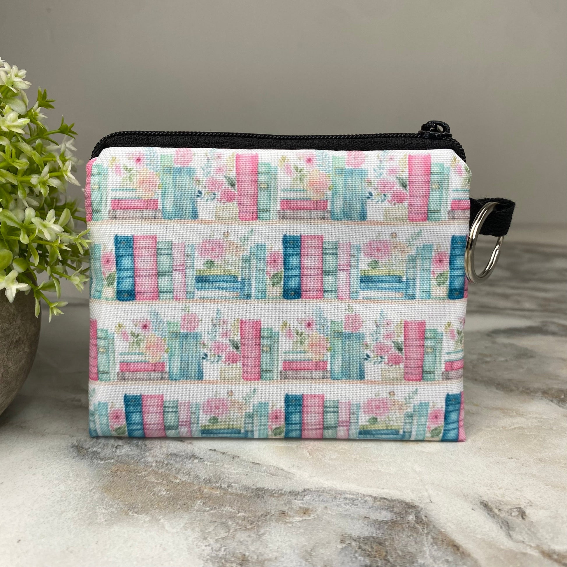 Mini Pouch - Books Blue Mint Pink Floral Shelves