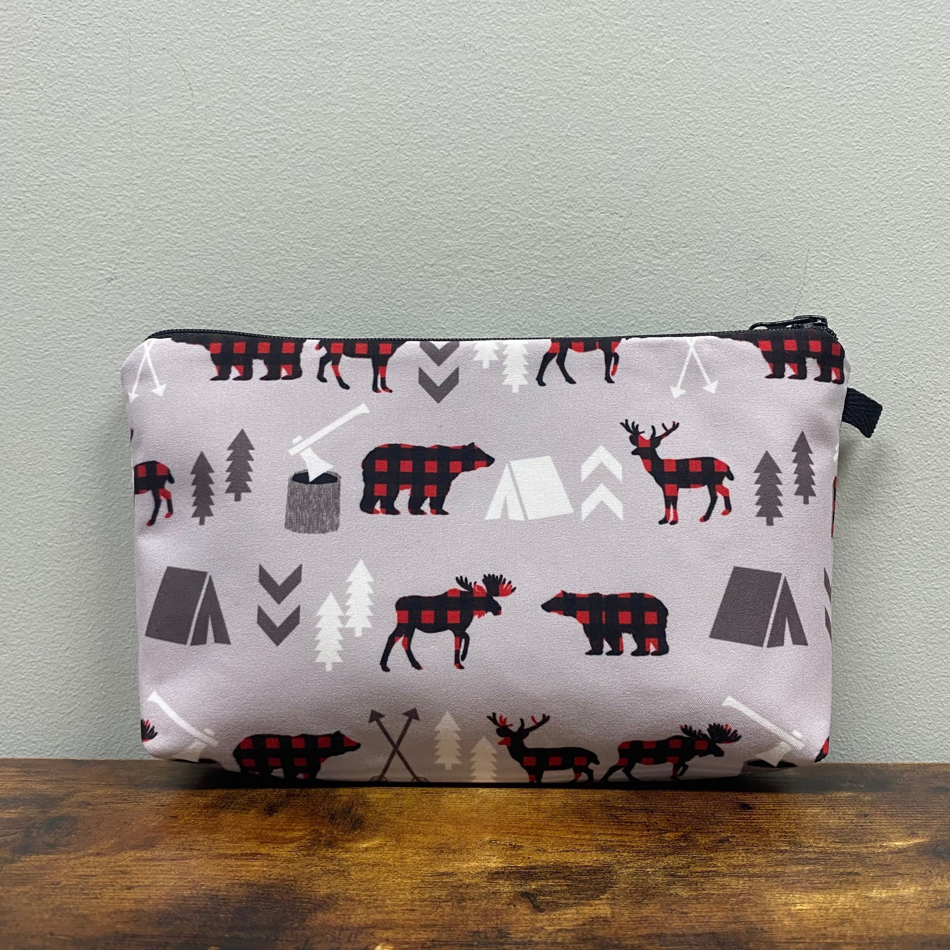 Pouch - Holiday Christmas - Plaid Woodland Creatures on Grey