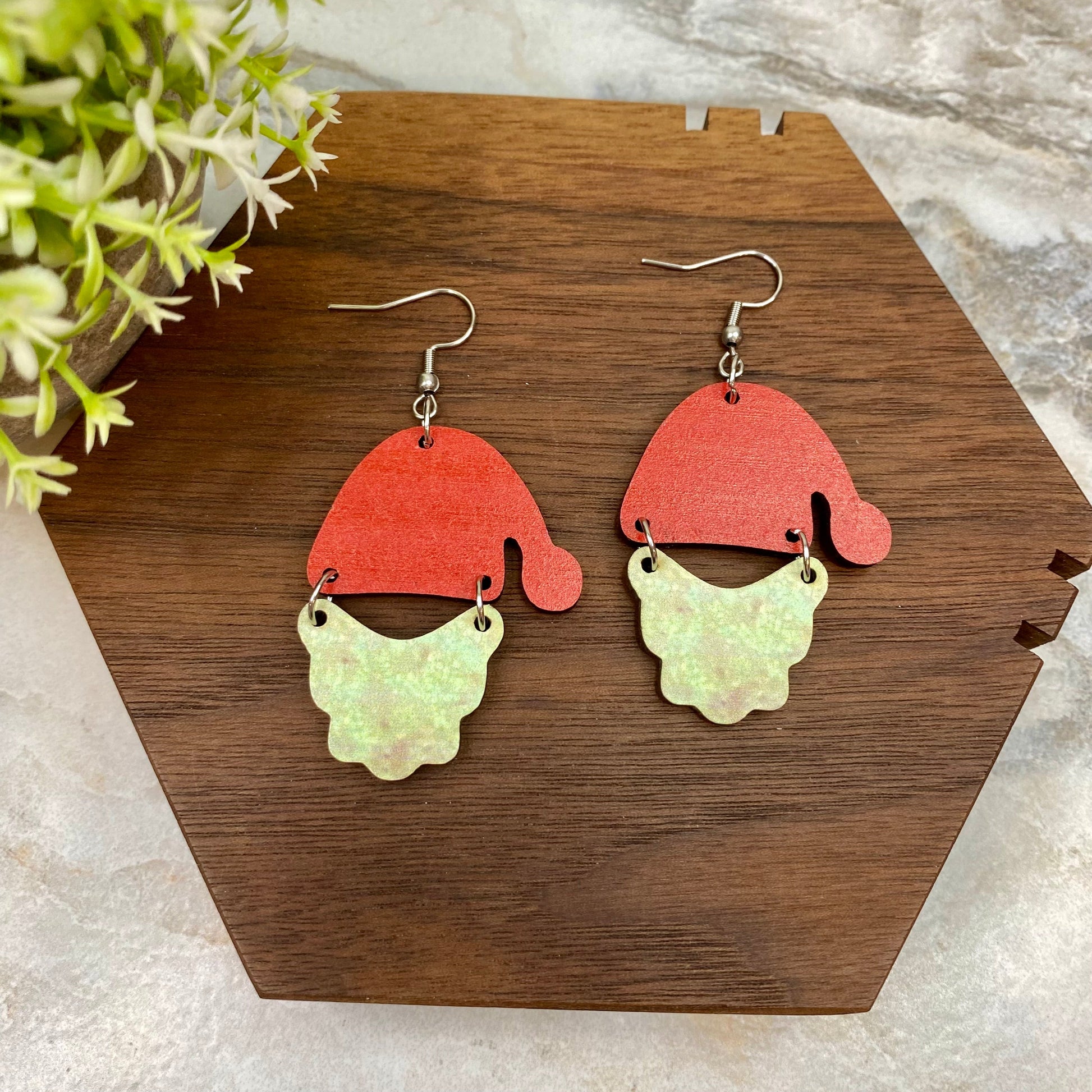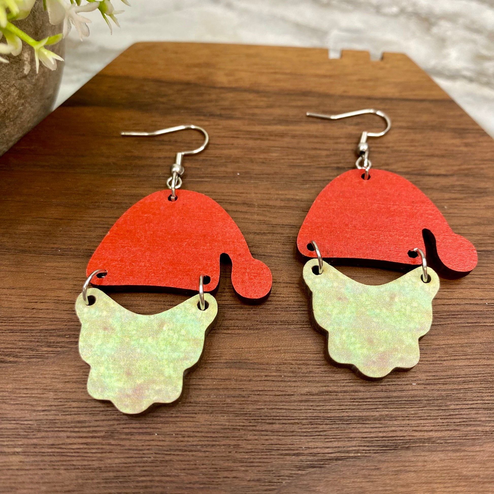 Wooden Dangle Earrings - Christmas - Santa Hat & Beard
